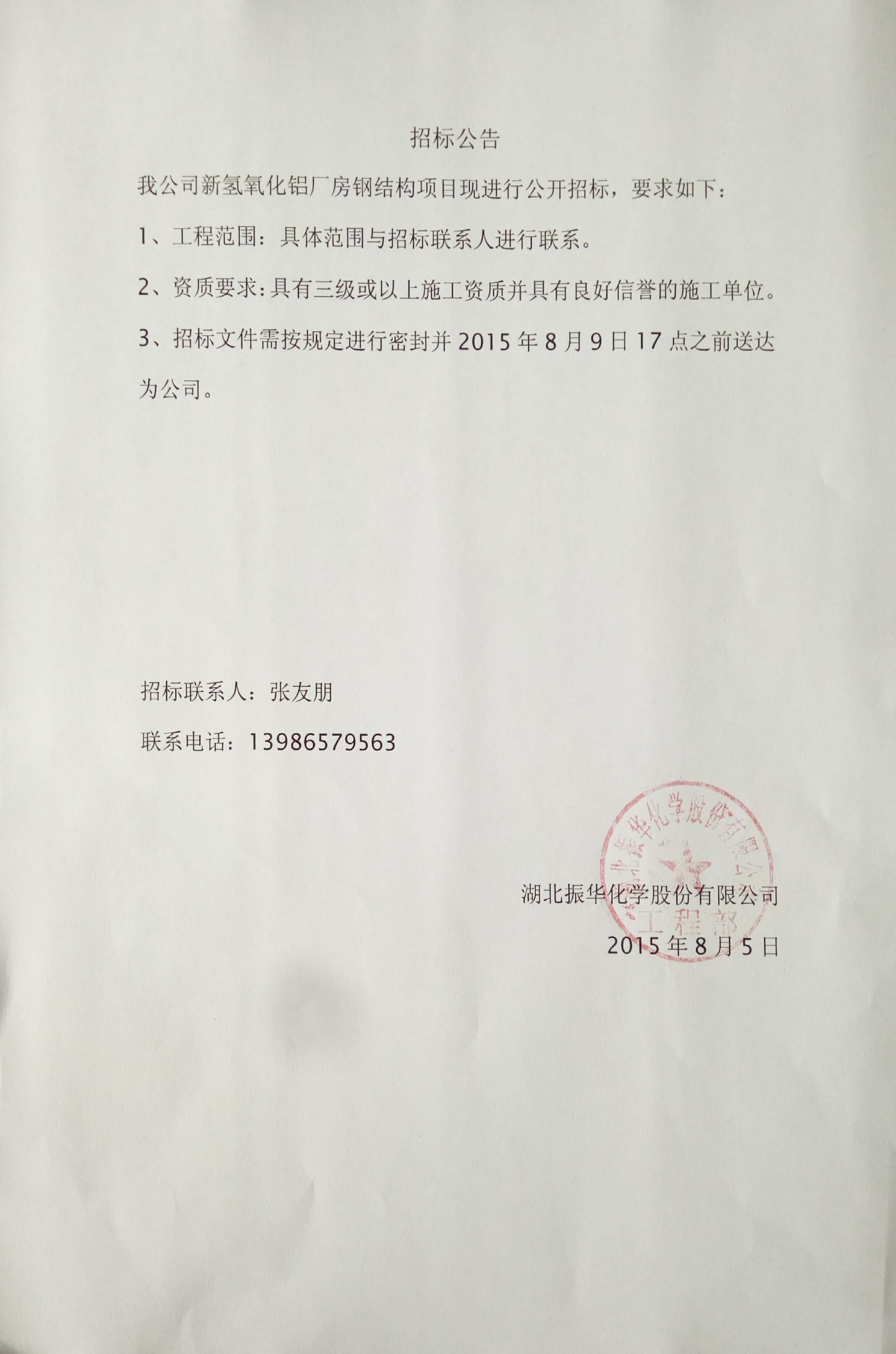 含鉻鋁泥綜合利用項目氫氧化鋁廠(chǎng)房鋼結構項目招標公告